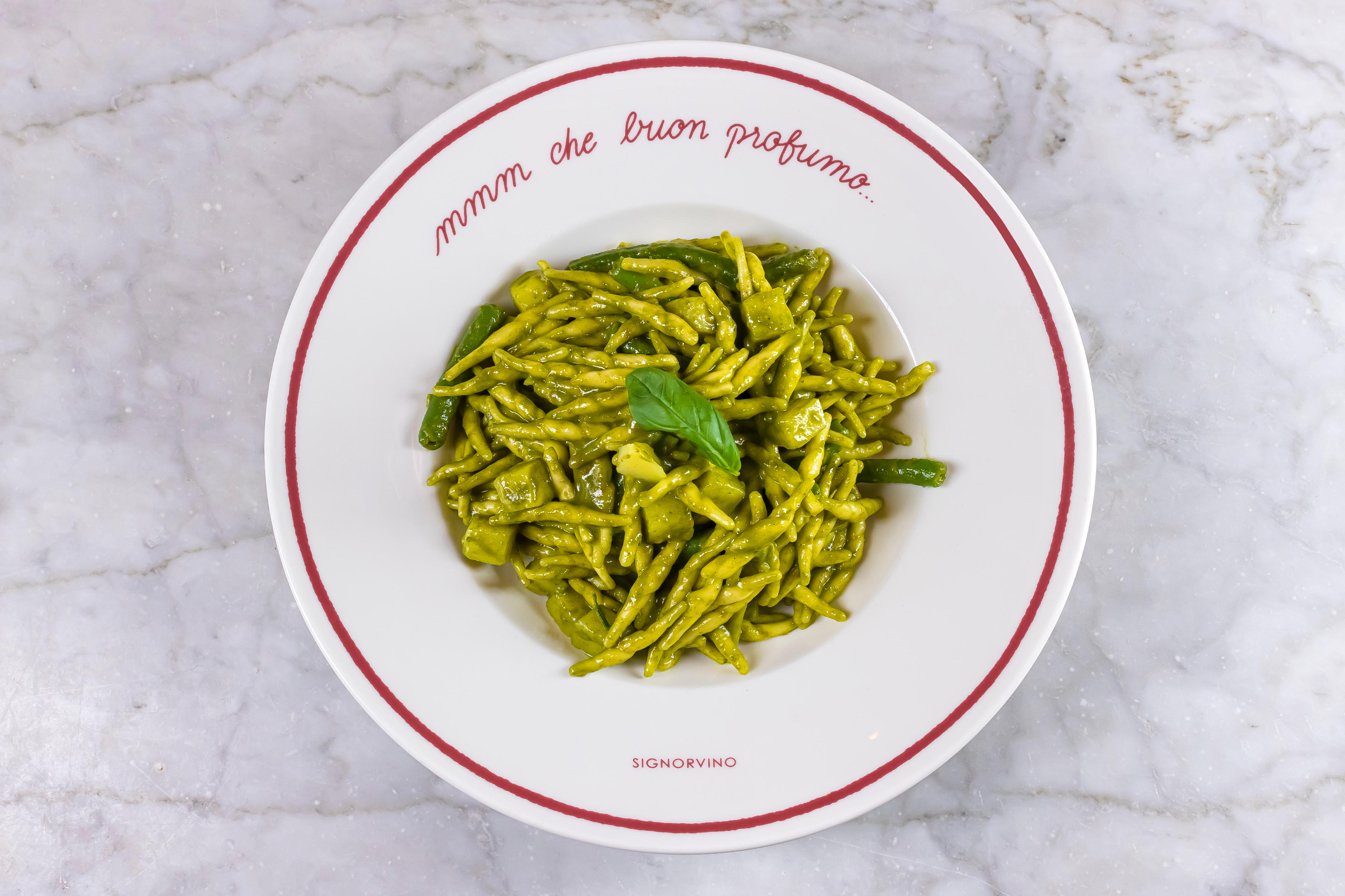 Trofie con pesto di basilico Genovese DOP, patate e fagiolini