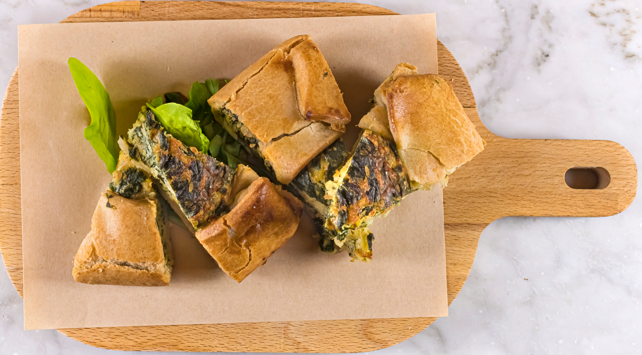 Torta salata ripiena di zucchine, spinaci e ricotta