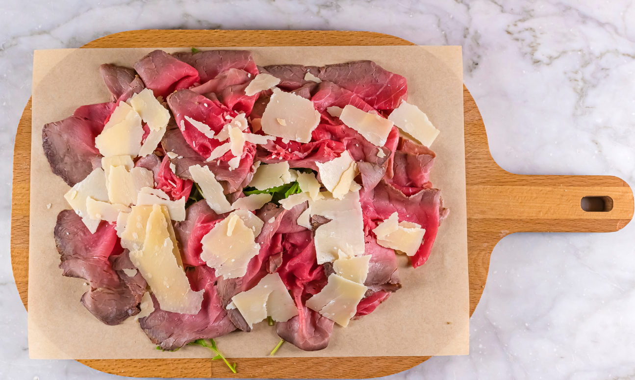 Roast Beef di manzo con rucola e scaglie di Parmigiano Reggiano DOP 24 mesi “Ambrosi”