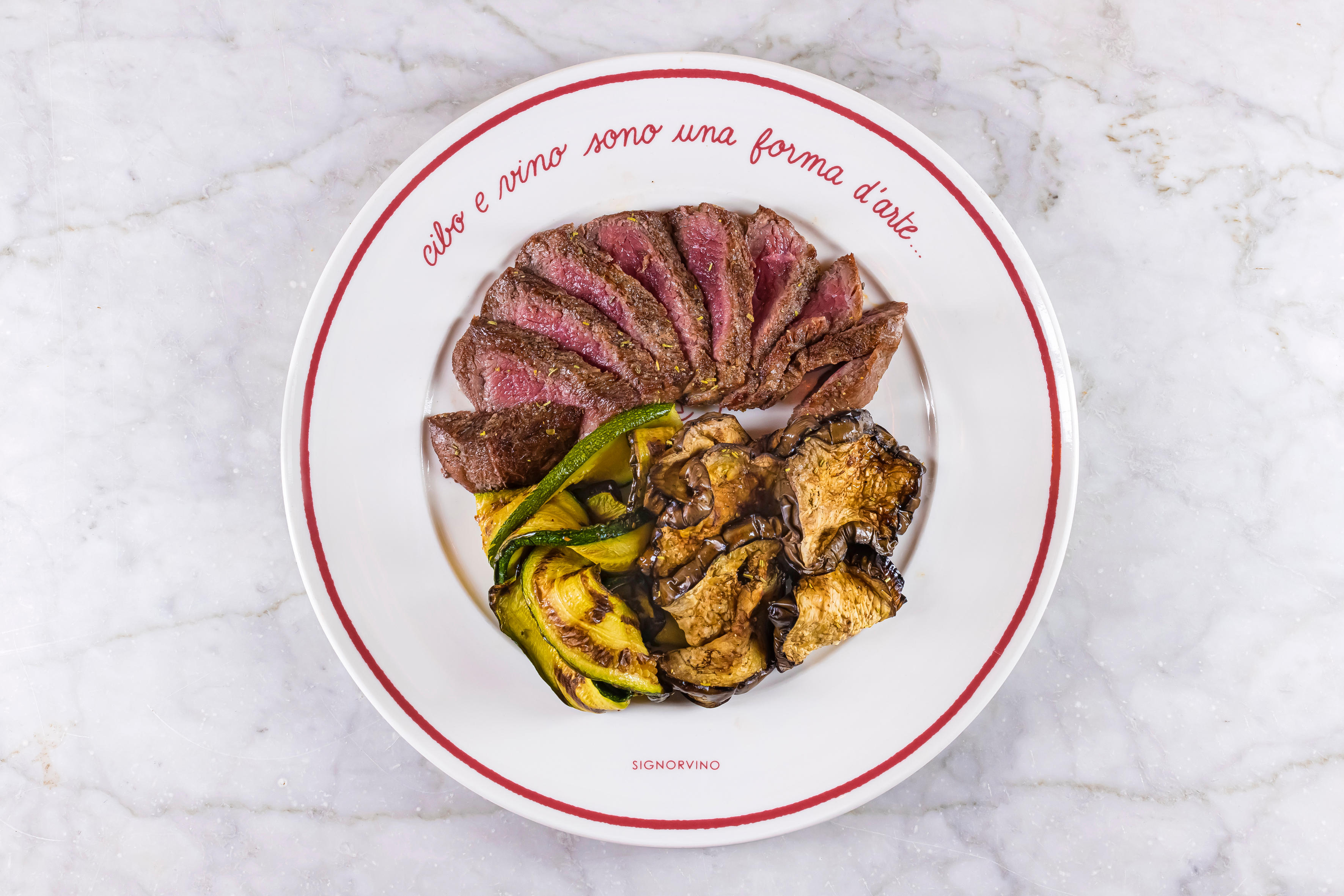 Tagliata di Fassona piemontese servita con verdure grigliate