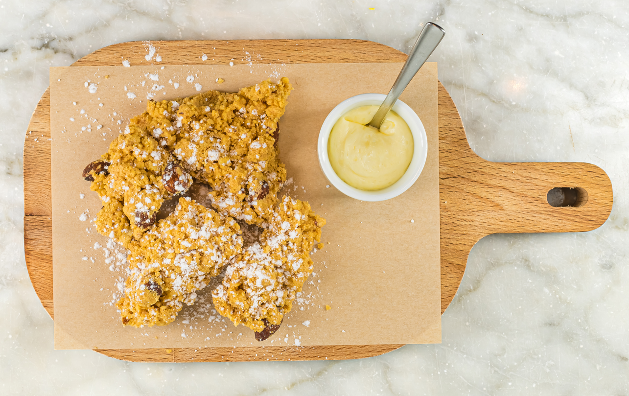 Dischetti di pasta sfoglia caramellata con crema Chantilly