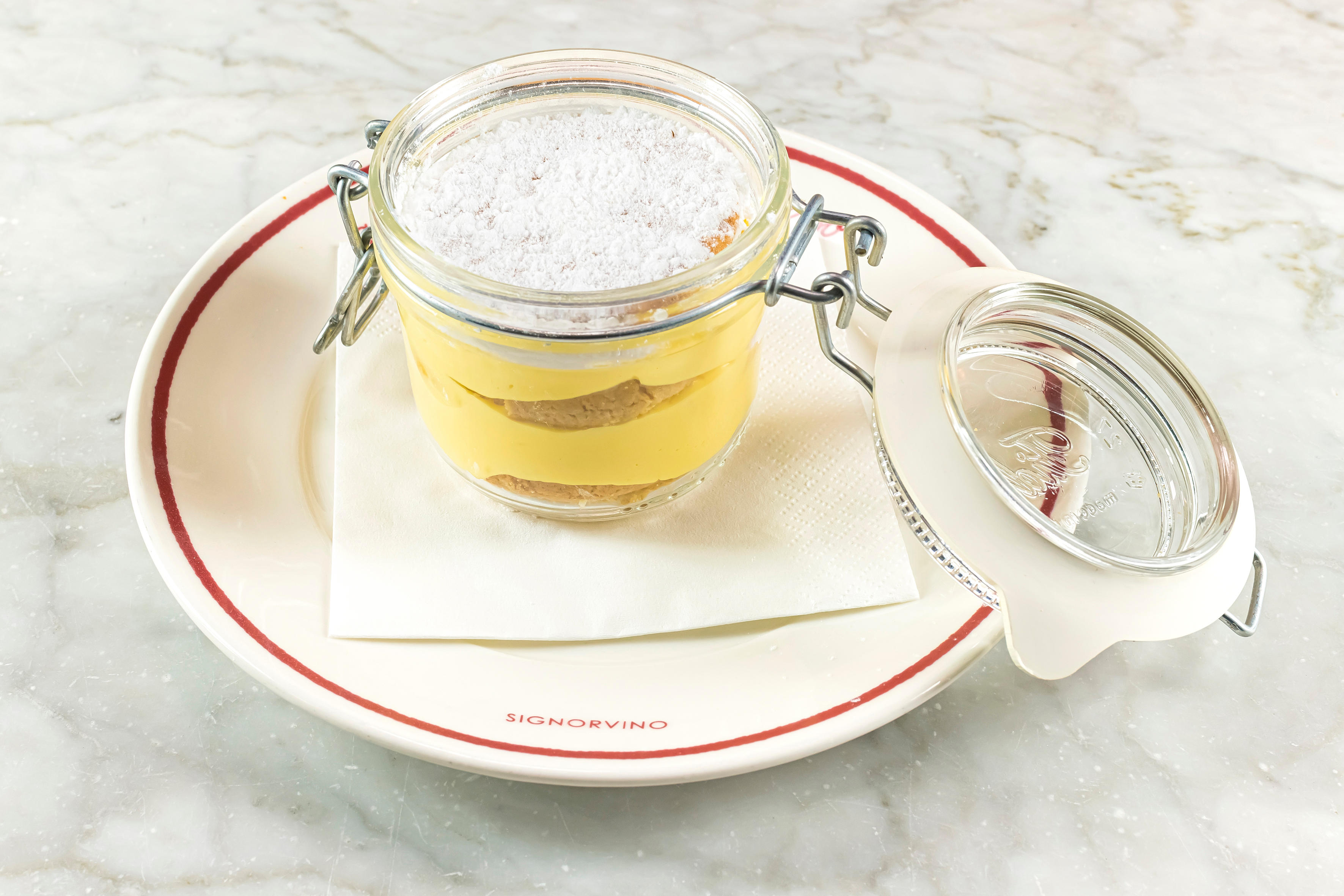 Crema tiramisù con savoiardo di riso, caffè e cacao