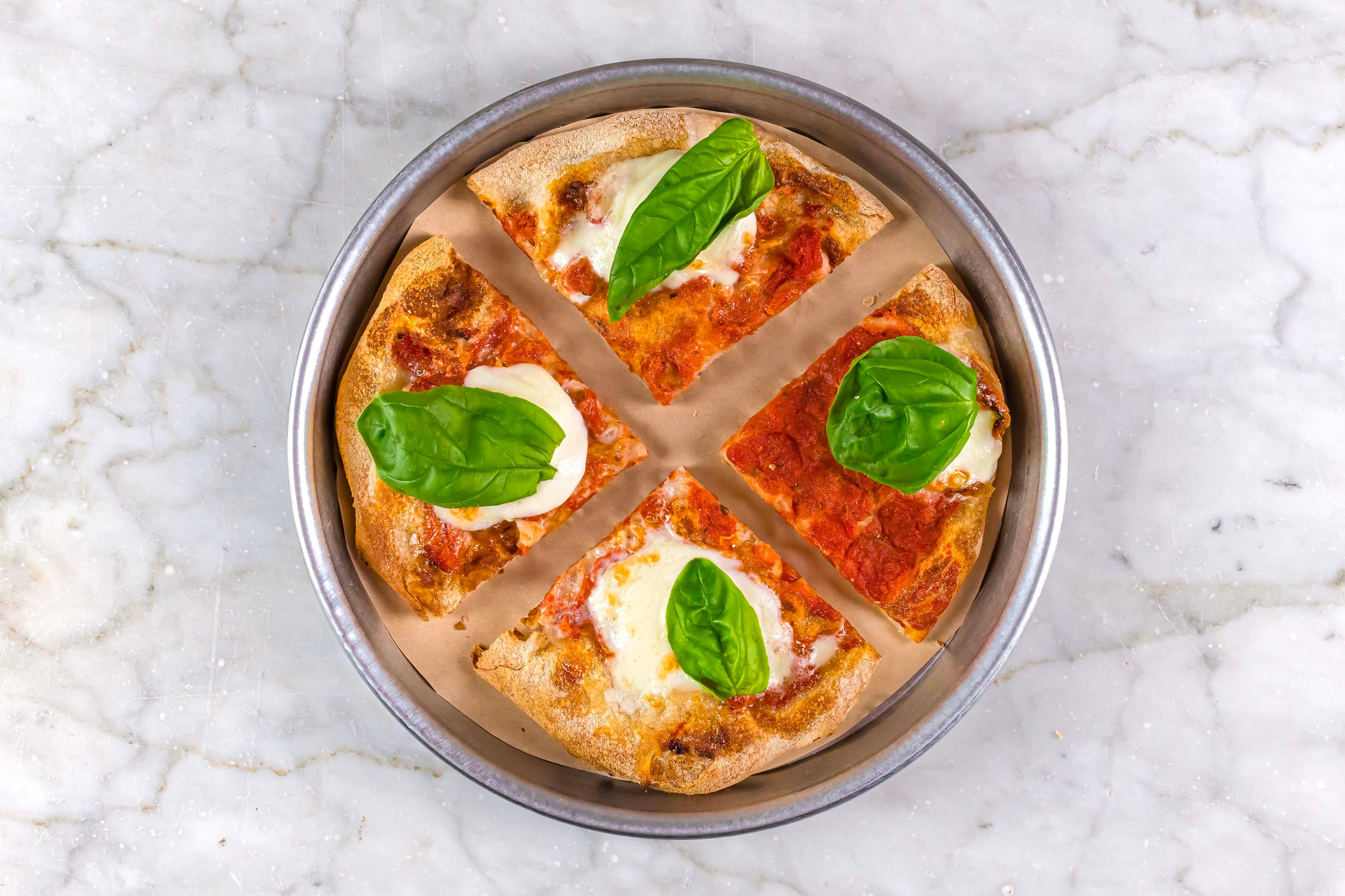 Focaccia rossa con pomodoro San Marzano, petali di Bufala filante e basilico fresco